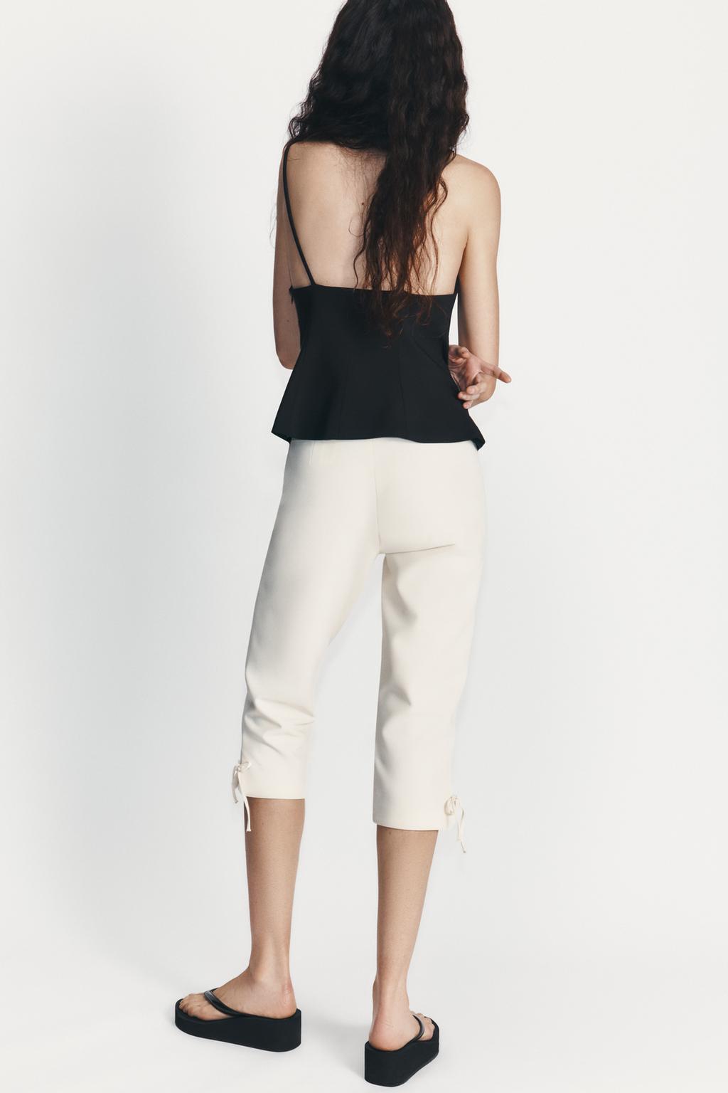 High-waist trousers. Bow detail on the hem. Invisible side zip fastening.
