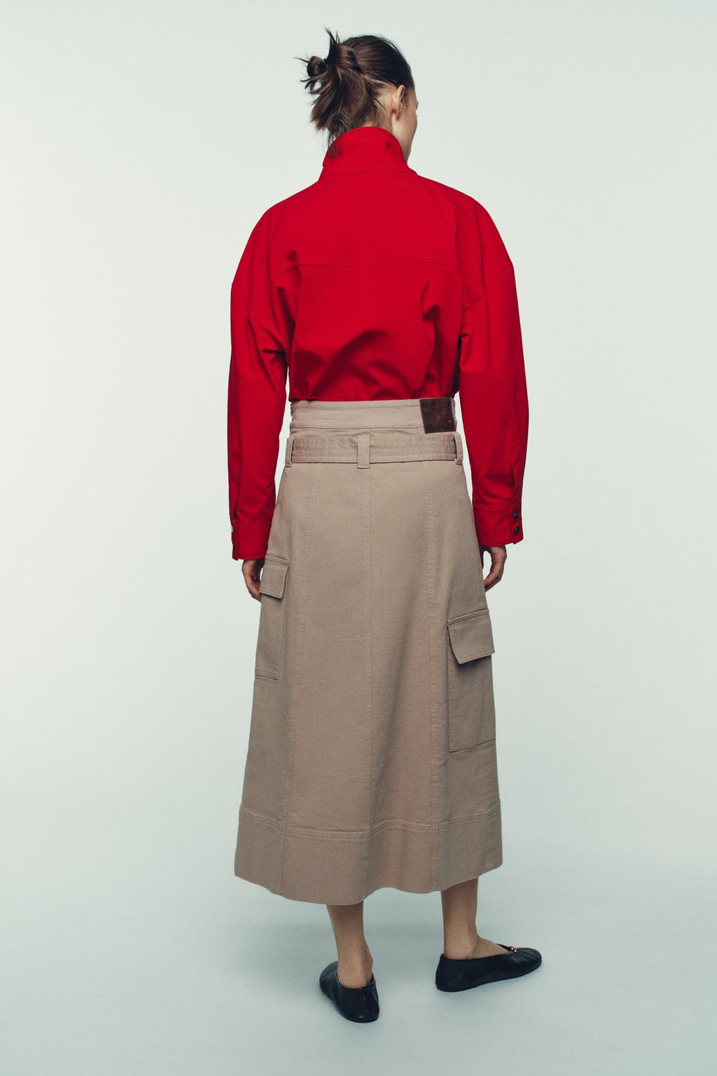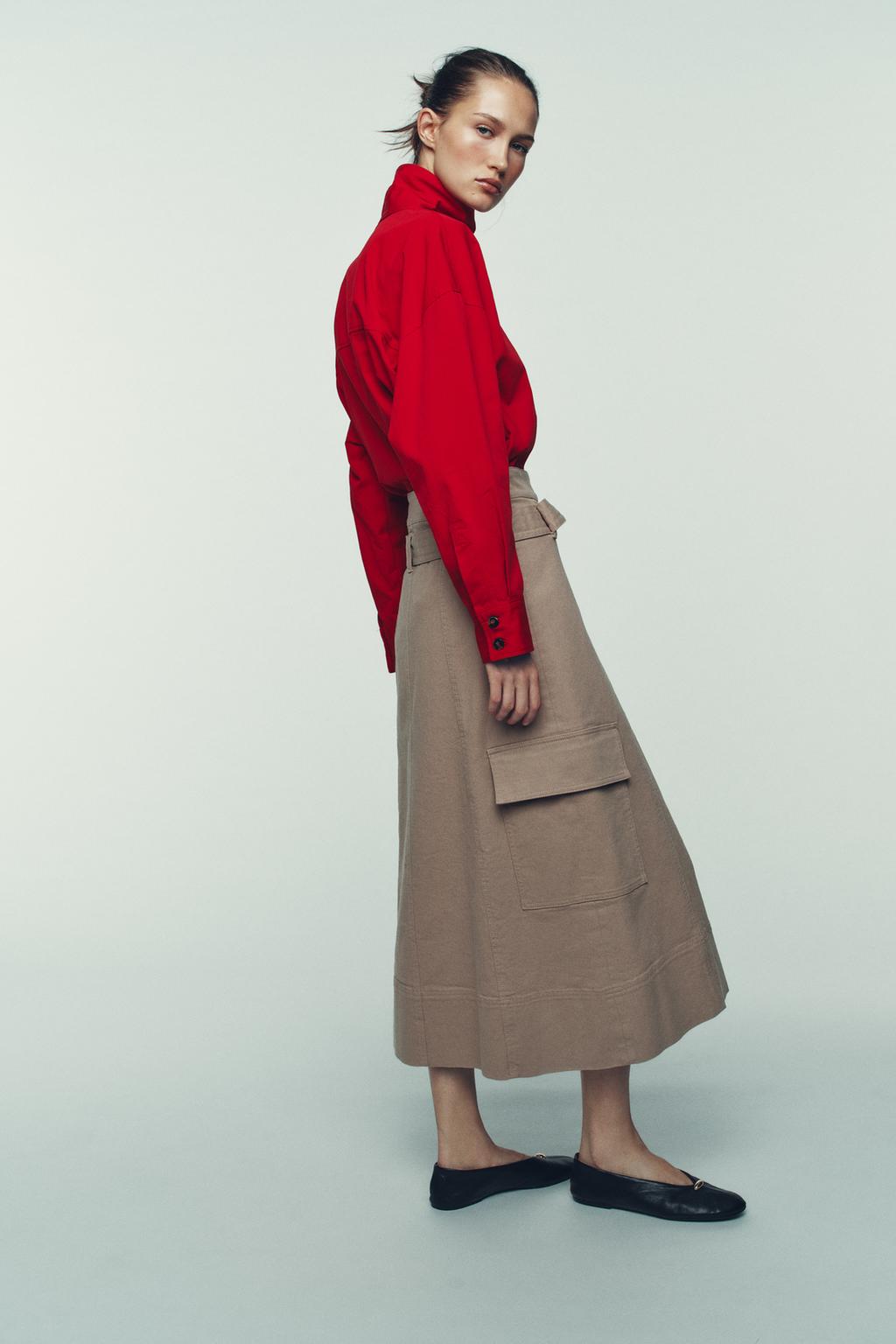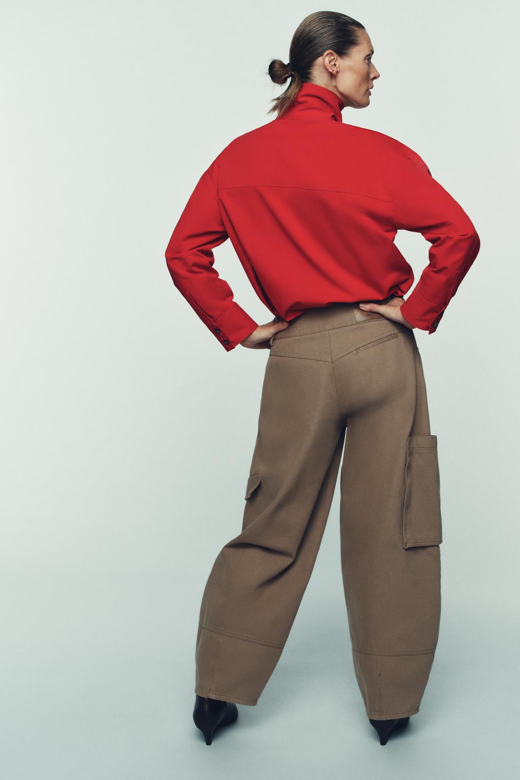 Chemise avec col montant et manches longues. Ourlet asymétrique. Fermeture cache-cœur boutonnée sur le devant.