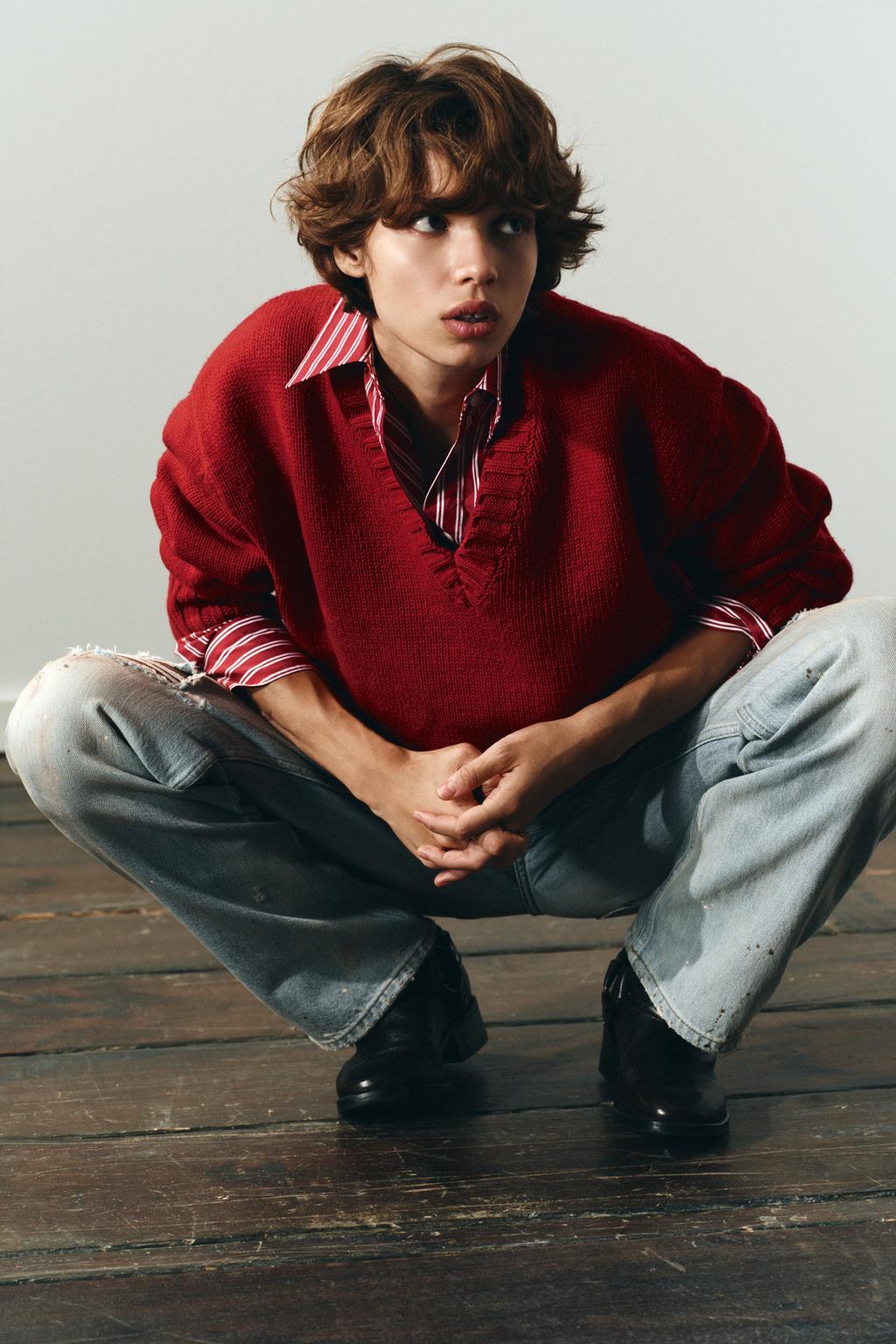 Chemise oversize avec col à revers. Manches longues et poignets avec emmanchure tombante. Détail de patte avec bouton dans le dos. Fermeture boutonnée sur le devant.