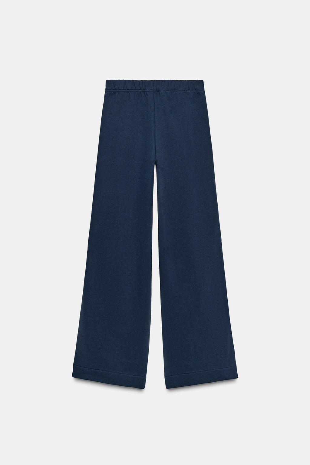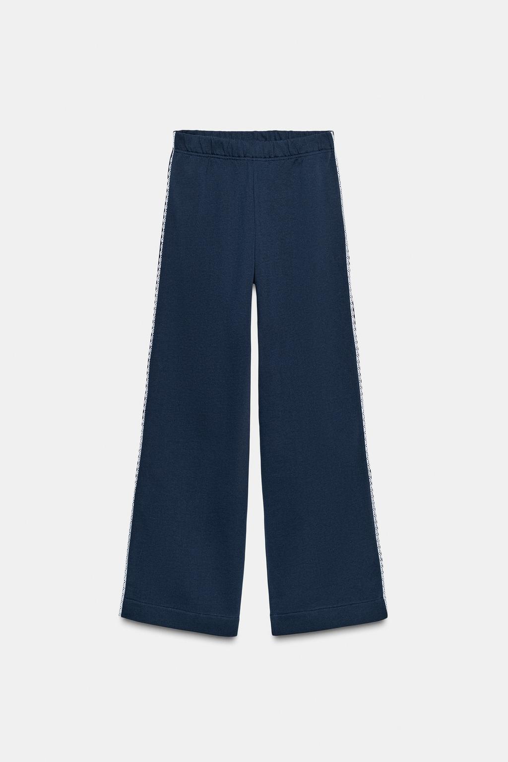 Pantalon taille haute avec taille élastique. Détail de dentelle combinée contrastée.
