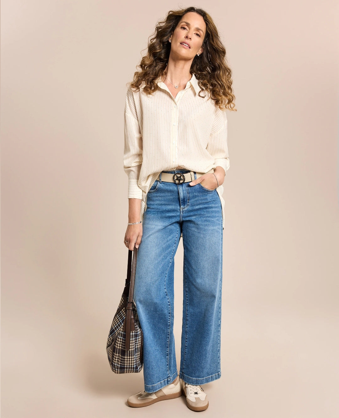Description: Jean large contemporain pour une allure décontractée et élégante