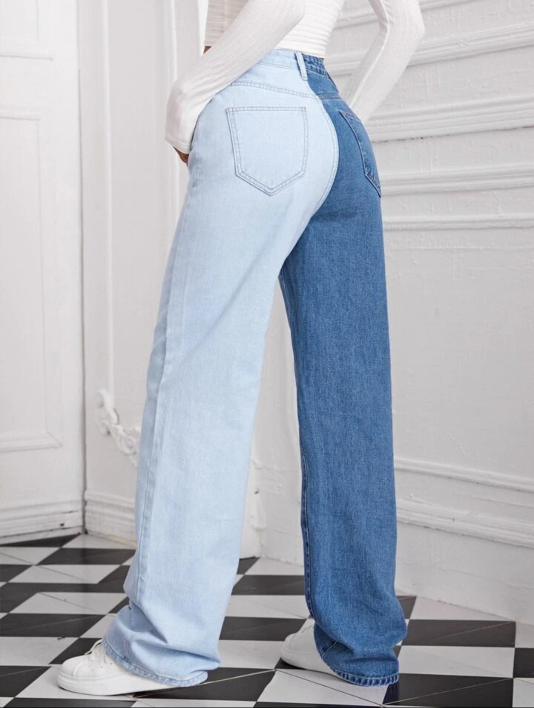 Rebellious Fashion - Jean droit bicolore en deux parties - Bleu.
