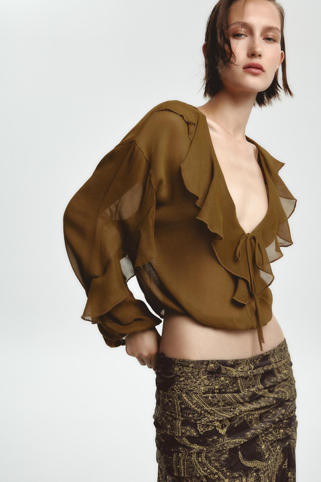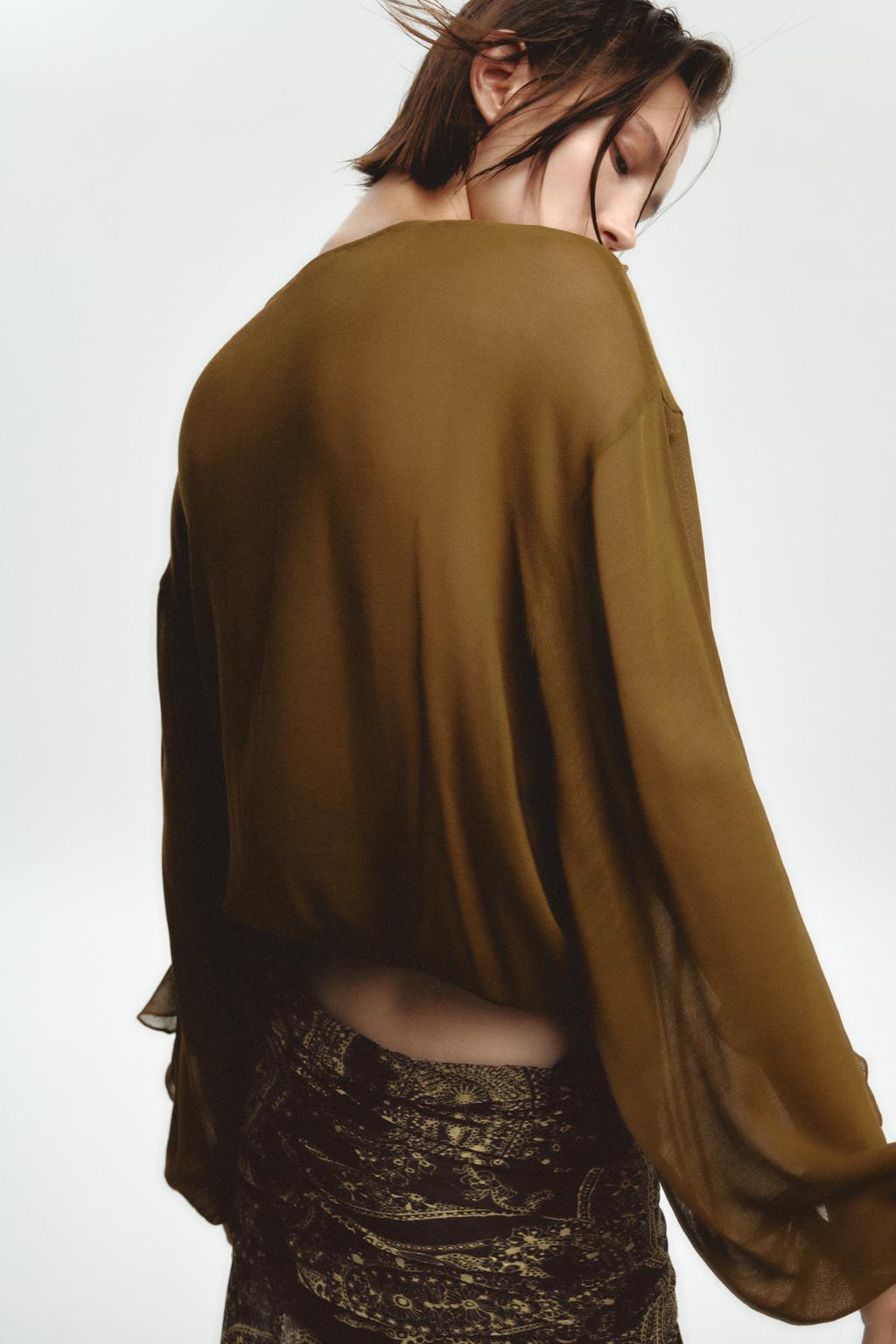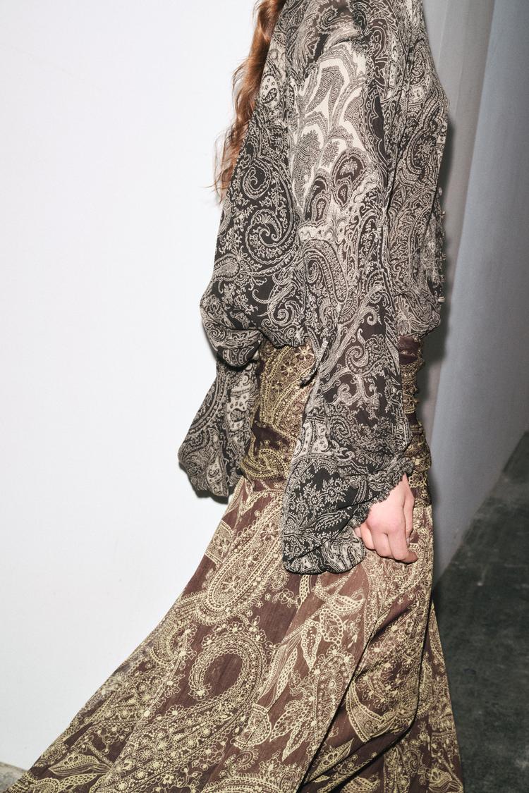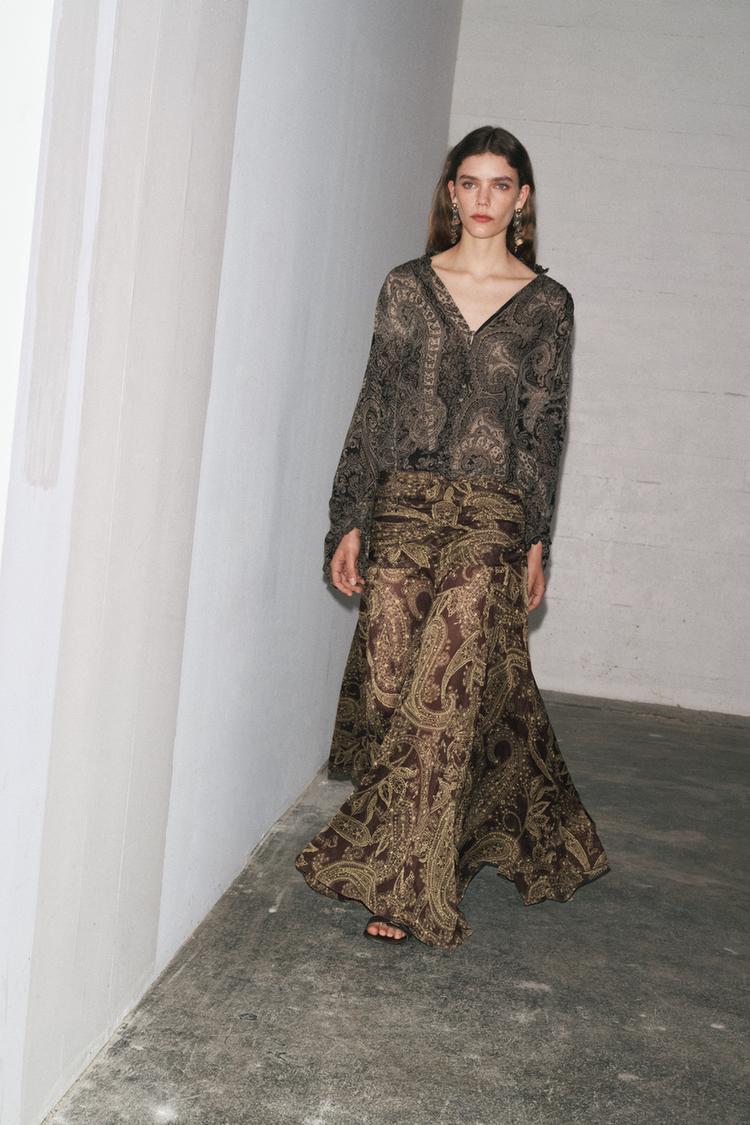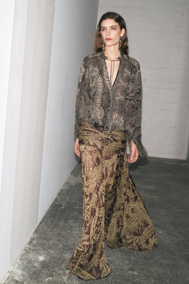 Jupe midi taille haute et taille avec drapé latéral. Bas asymétrique fini en coupe évasée. Fermeture avec zip dissimulé dans la couture.