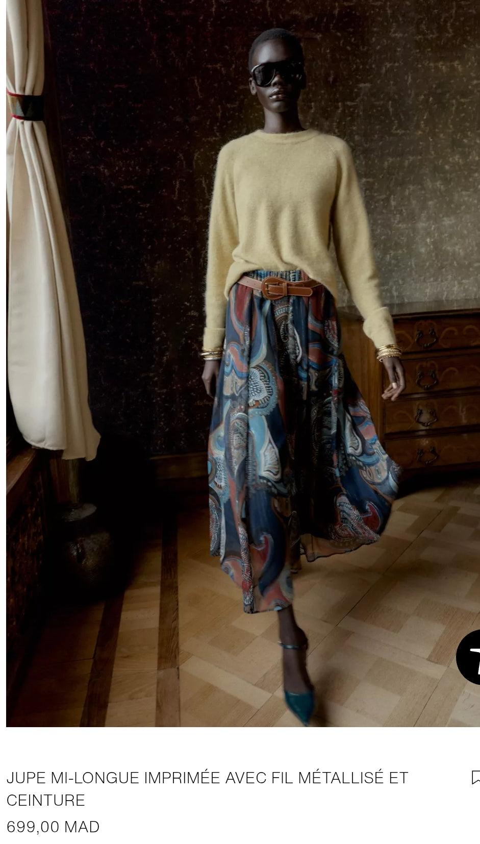 JUPE MI-LONGUE IMPRIMÉE AVEC FIL MÉTALLISÉ ET SANS CEINTURE