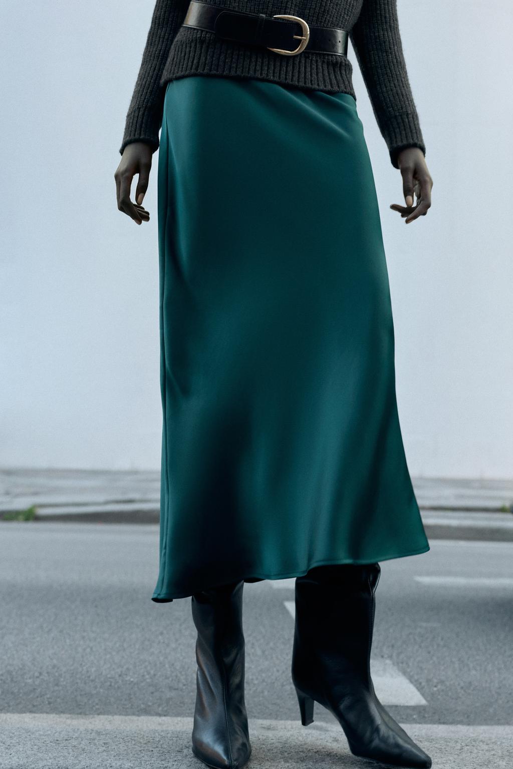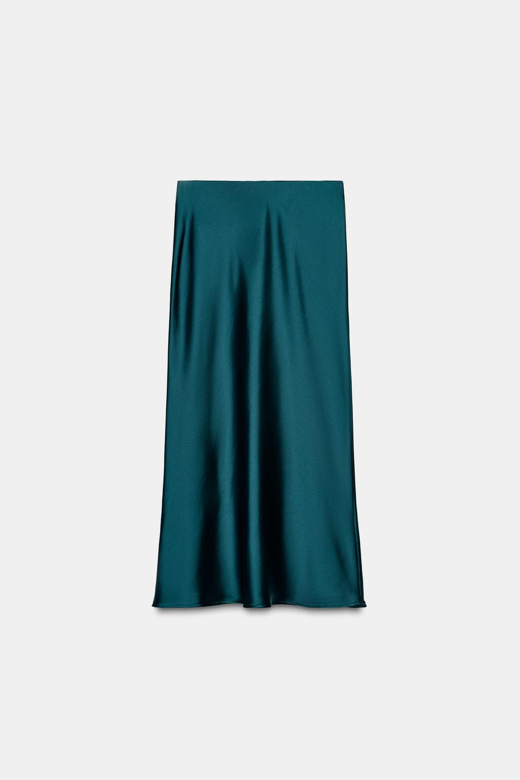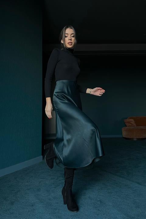 Jupe mi-longue avec taille élastique. Tissu satiné.