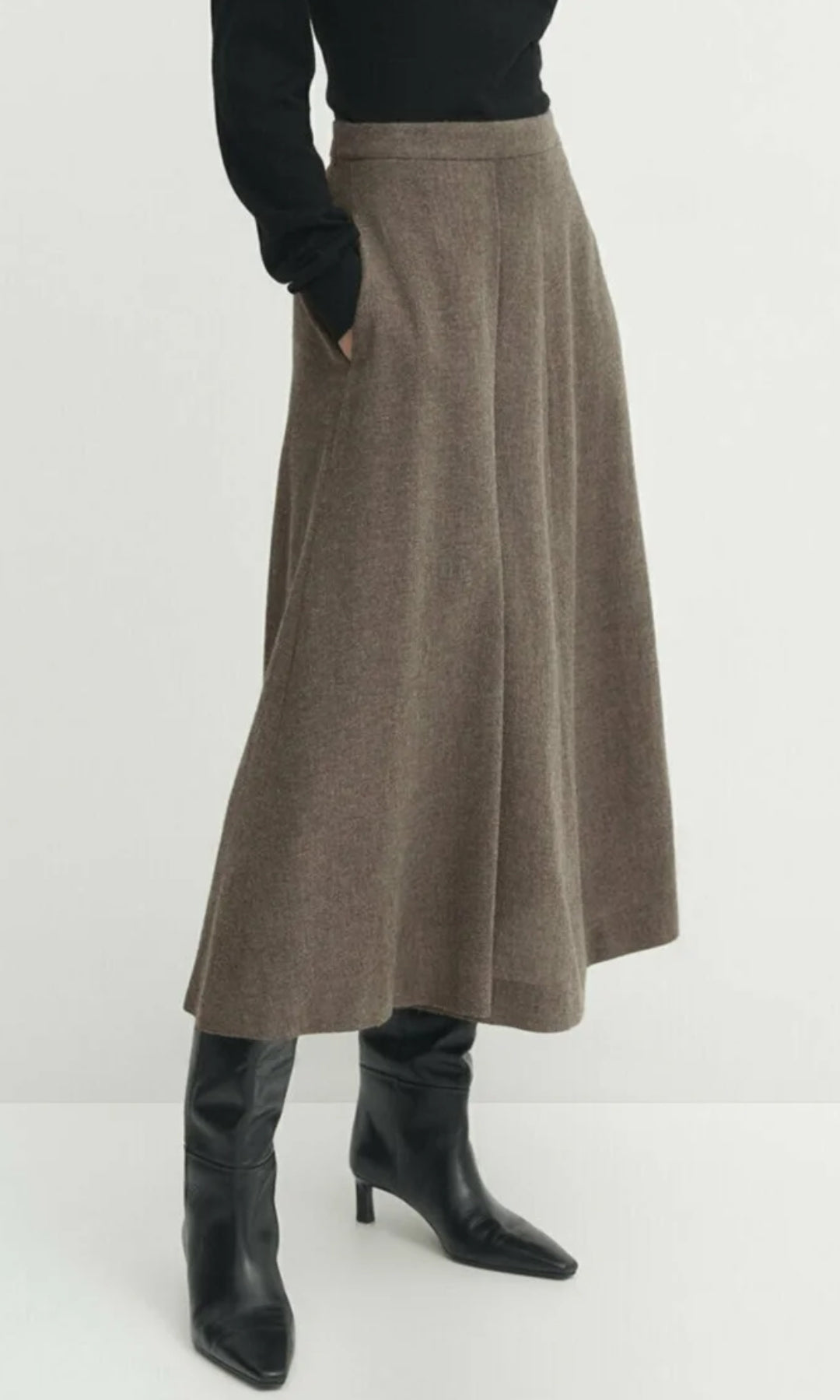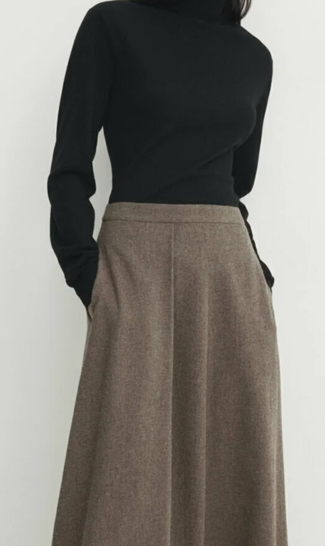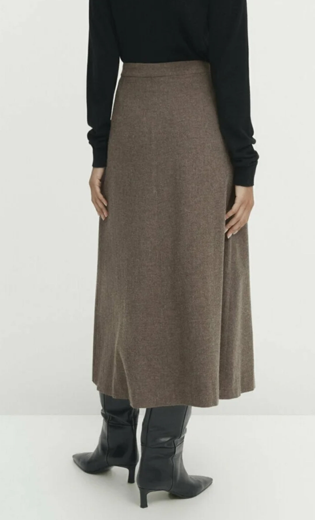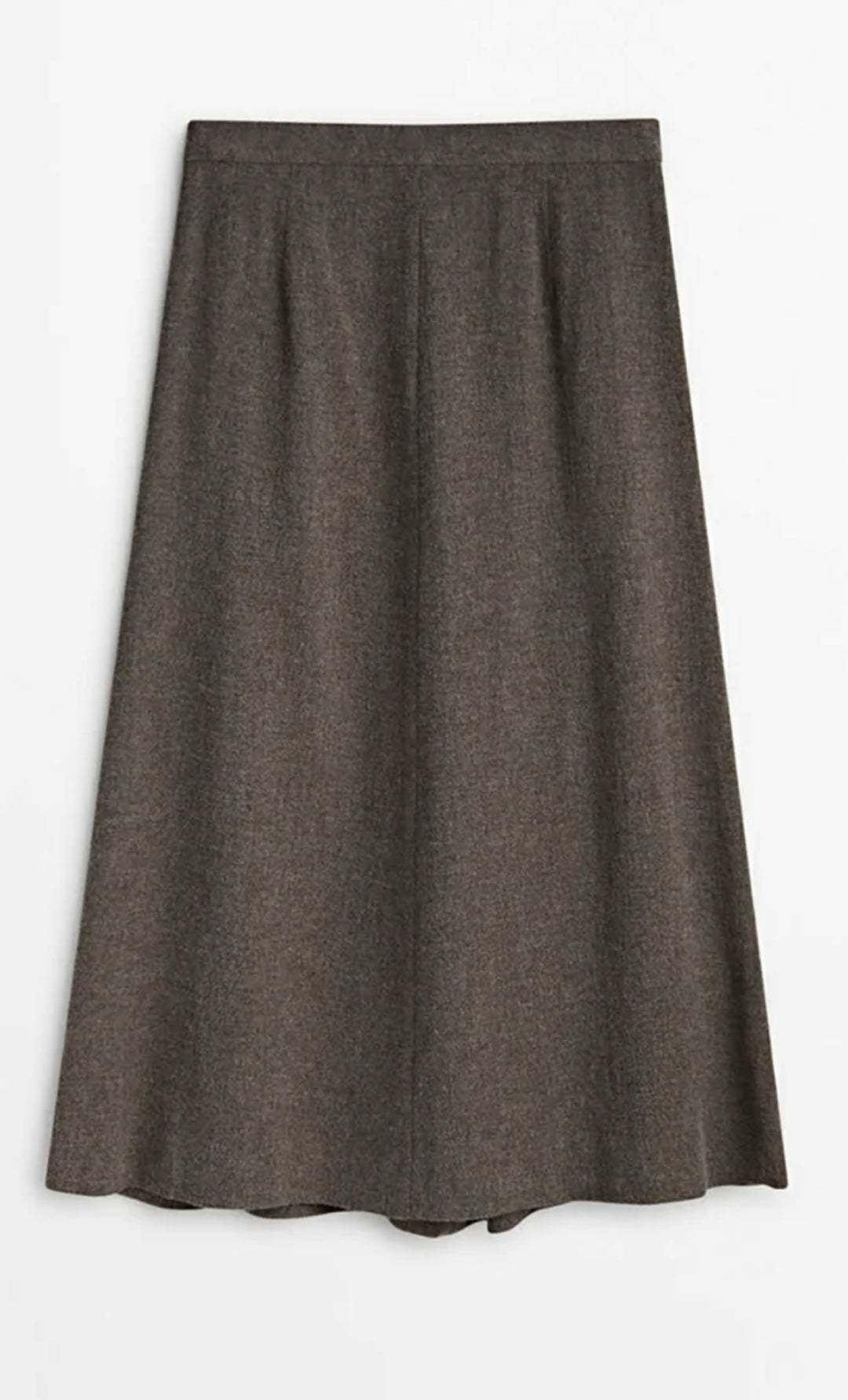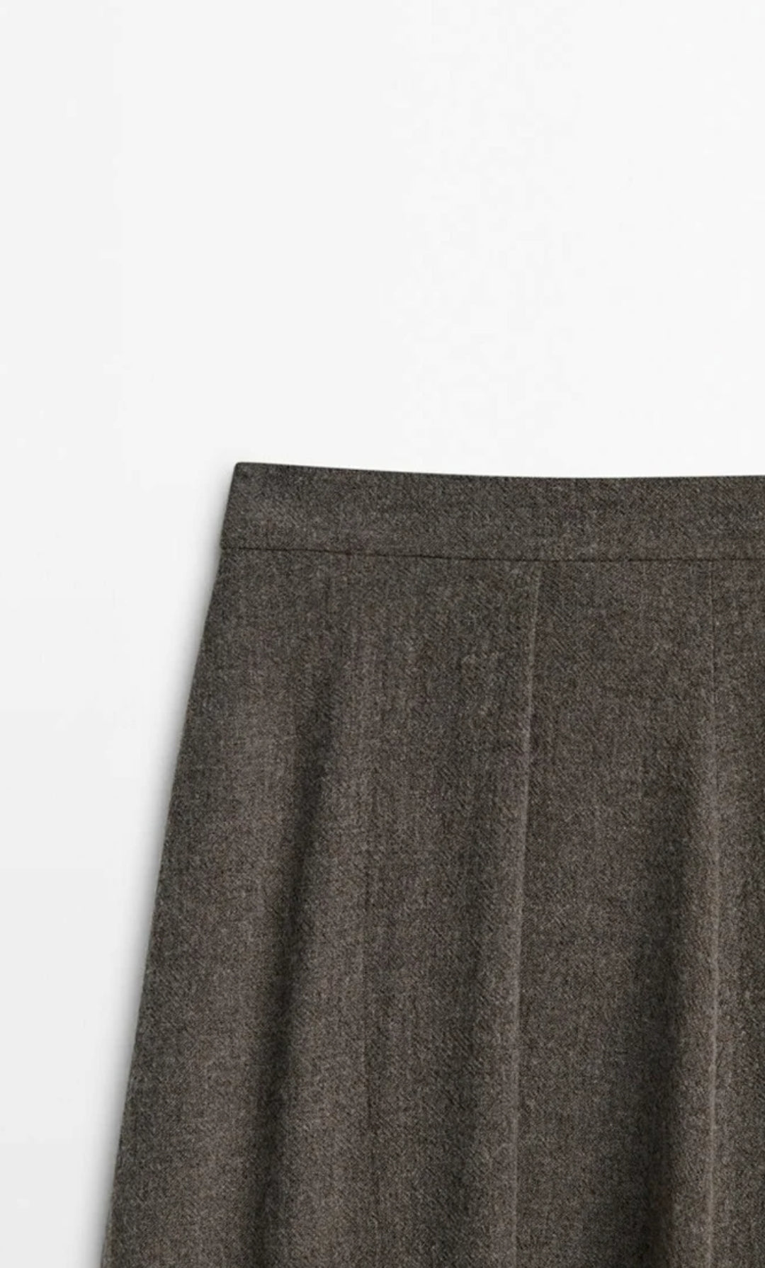 Jupe évasée. Confectionné en laine. Coupe midi. Fermeture éclair sur le côté. Composition : viscose 70%, laine 30%.