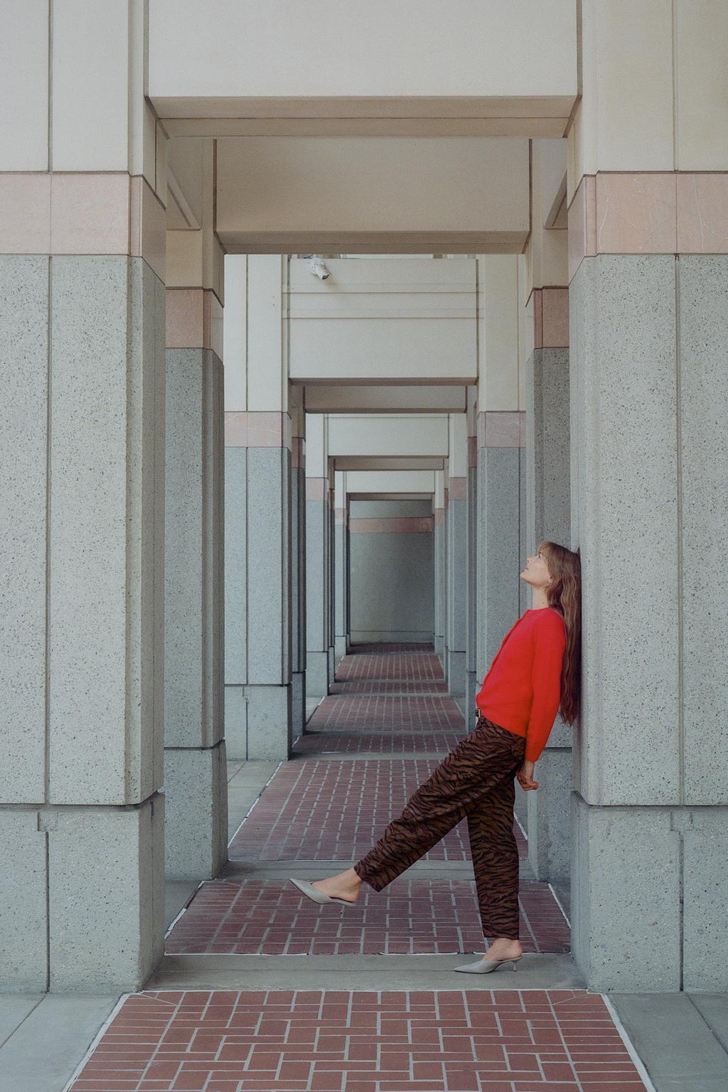 Pantalon taille moyenne avec poches avant et fausses poches avec rabat au dos. Hanches et cuisses larges, se resserrant progressivement vers la cheville, créant un effet arrondi et ample. Fermeture avant avec fermeture éclair, bouton intérieur et crochet.