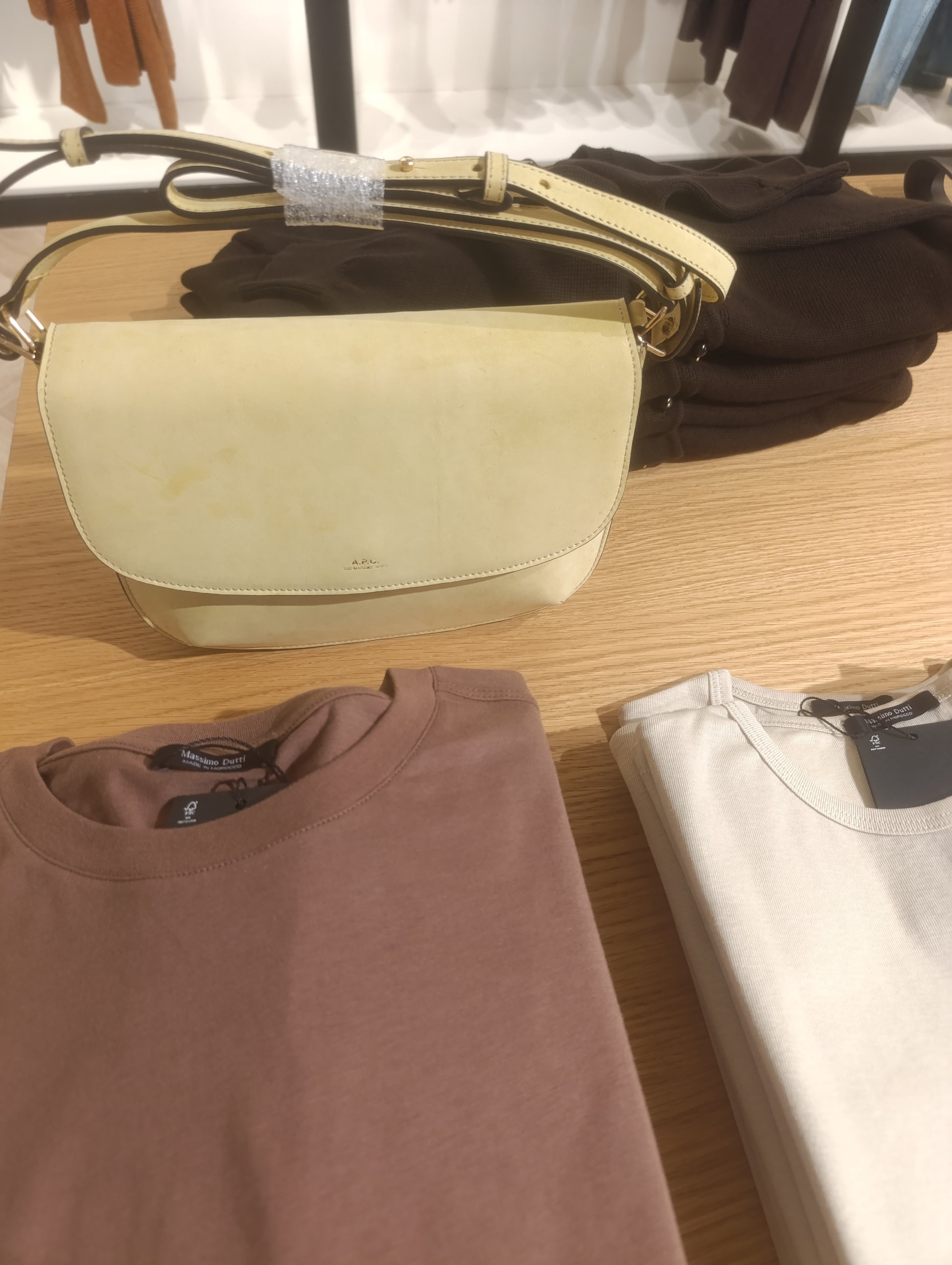 - Logo embossé doré "A.P.C. Rue Madame Paris".
