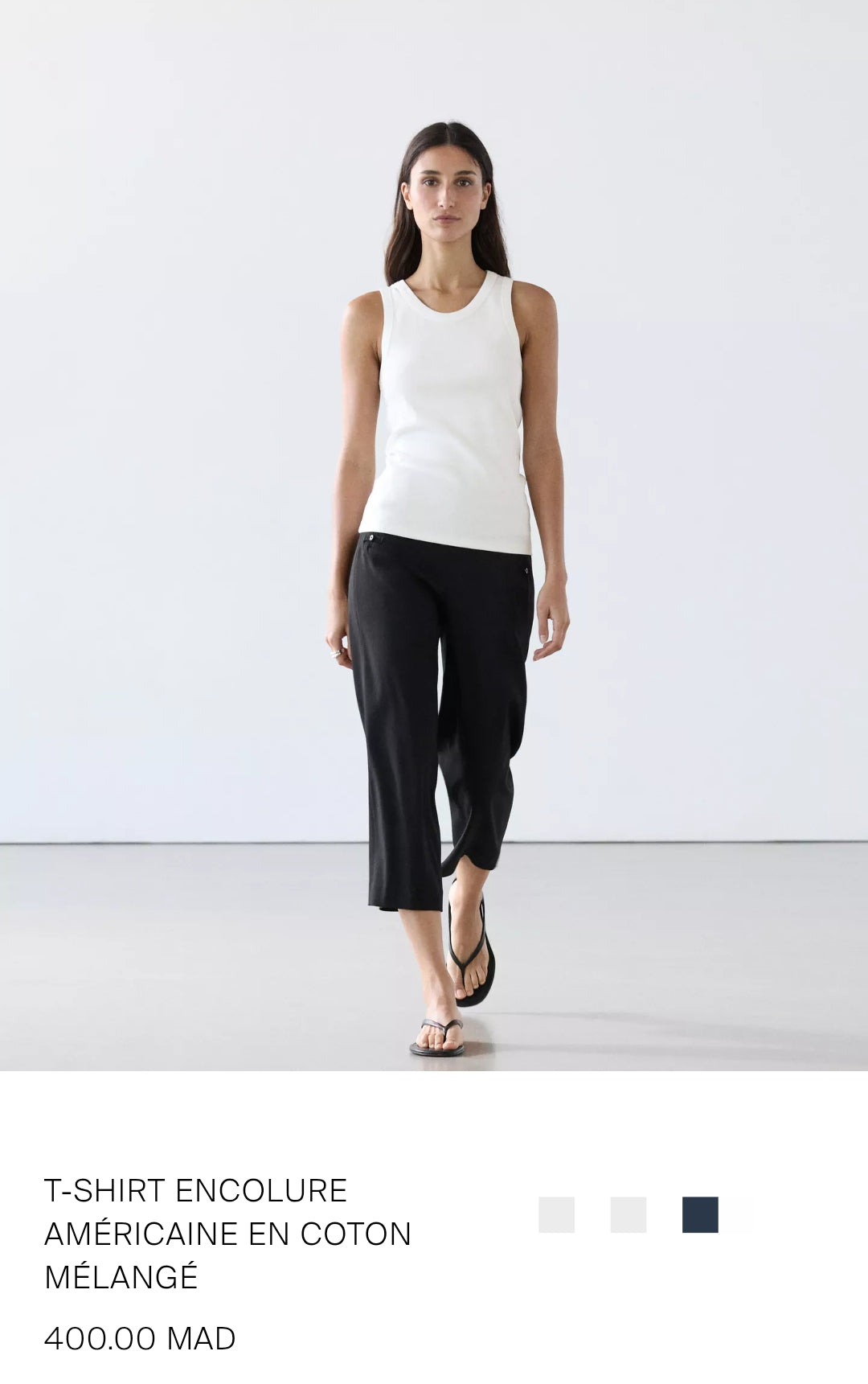 empty T-shirt en coton mélangé. Encolure américaine. Col rond. Sans manches.