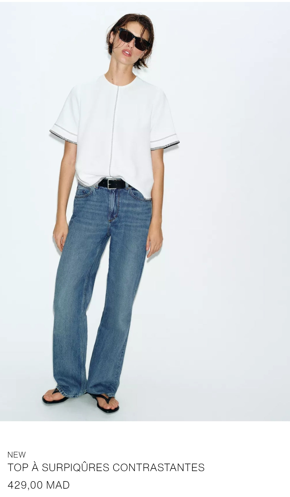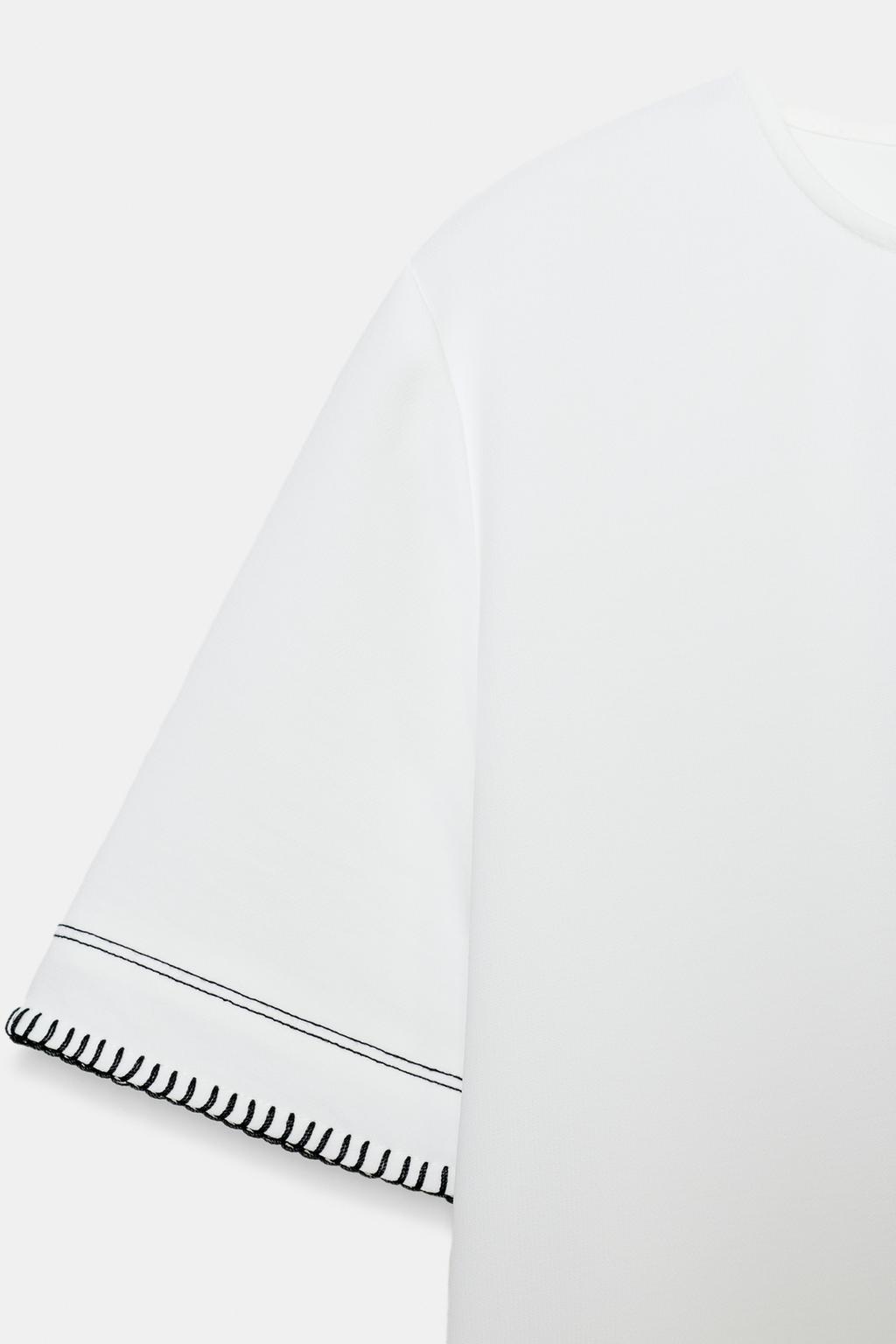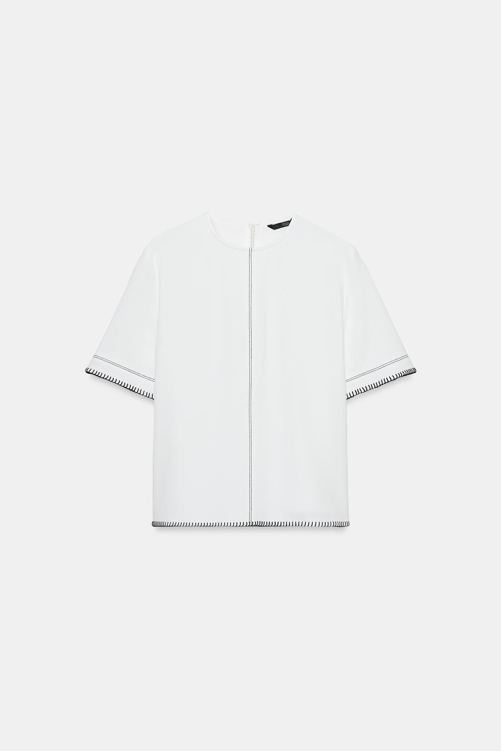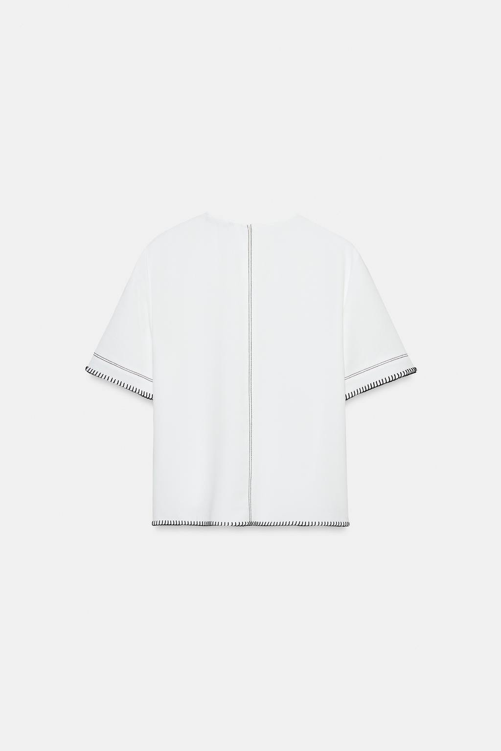 Top à col rond et manches courtes. Détail de surpiqûres combinées à contraste. Fermeture au dos avec ouverture et bouton caché.