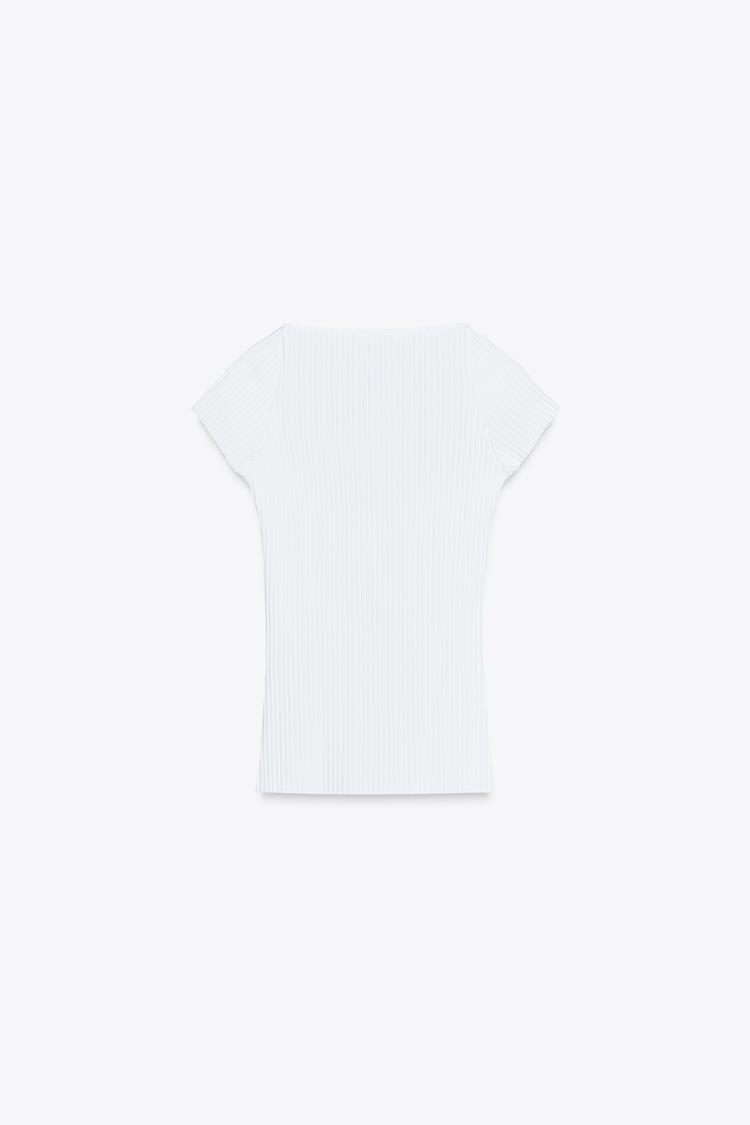 Top cintré confectionné en tissu côtelé. Décolleté cœur et manches courtes.