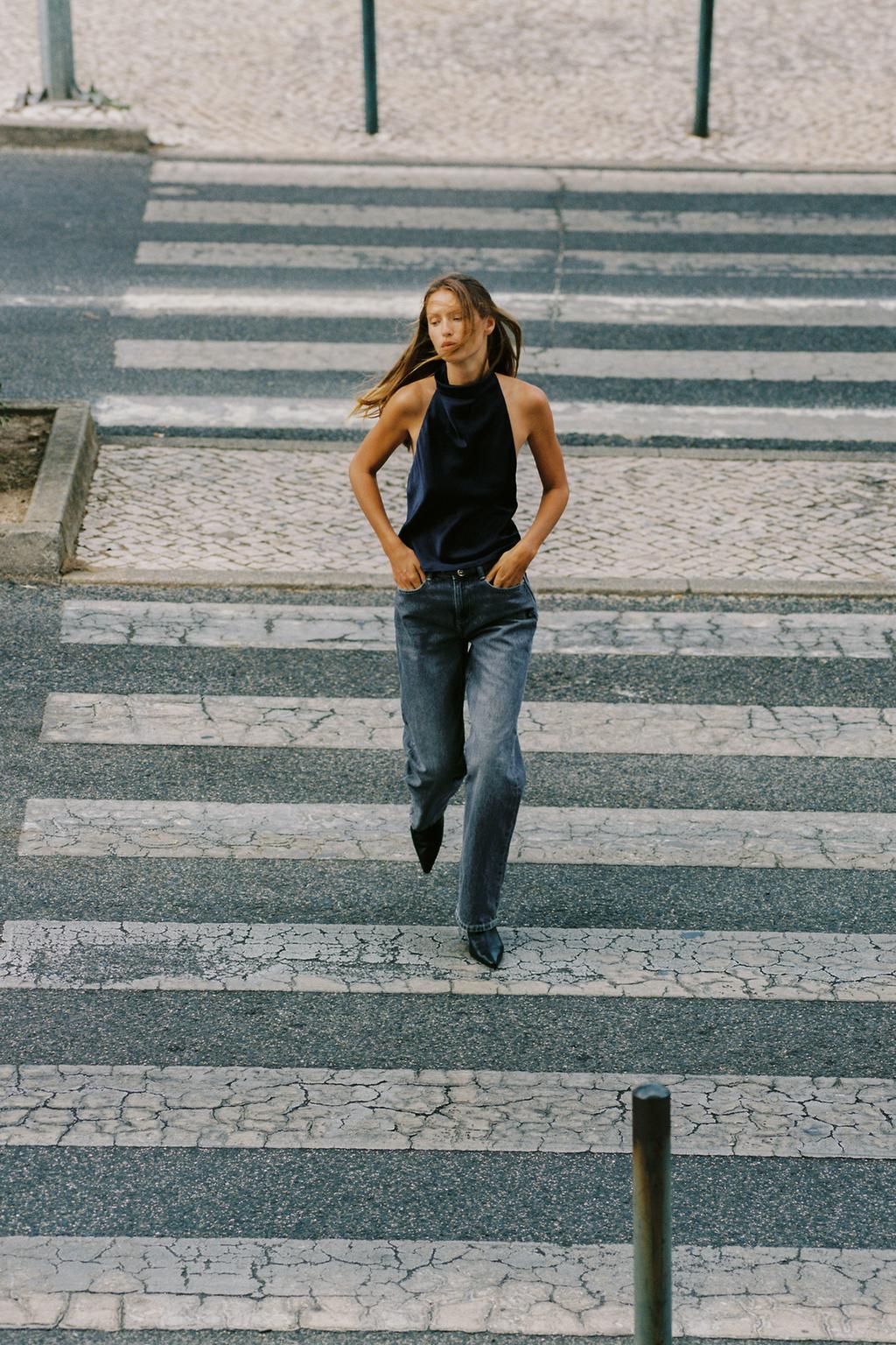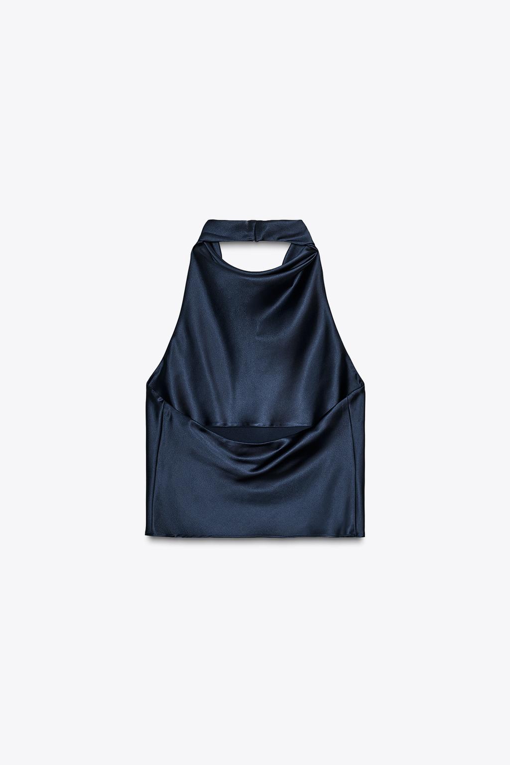 Top à encolure halter avec dos nu. Fermeture arrière avec boutons dissimulés.